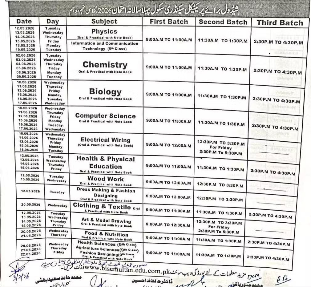 The Punjab Class 10 Exams Datesheet Released the schedule for practical examinations for Class 10 students . Key points regarding practical exams include: